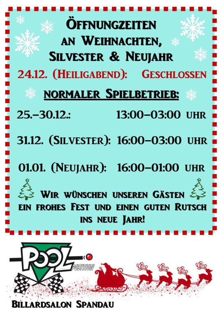 Wir sind ganzjährig außer an Heiligabend geöffnet.